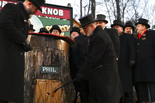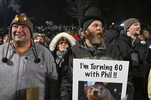 People gathered Thursday at Gobbler’s Knob as members of Punxsutawney Phil’s “inner circle” summoned the groundhog from his tree stump at dawn to learn if he has seen his shadow — and they say he did. According to folklore, if he sees his shadow there will be six more weeks of winter. If he doesn’t, spring comes early.
