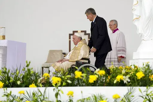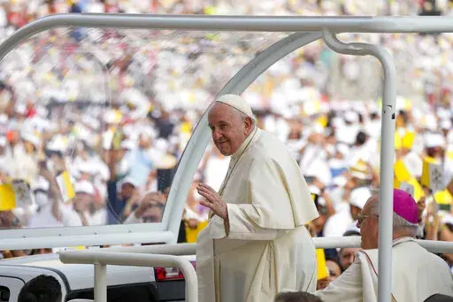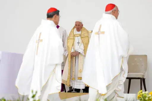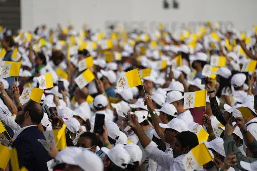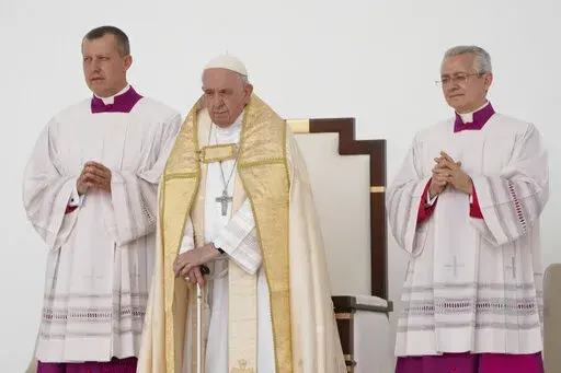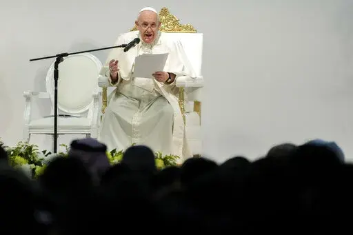 MANAMA, Bahrain (AP) — Pope Francis shifted gears Saturday in his visit to Bahrain to minister to the Gulf's Catholic community, presiding over a huge open-air Mass and then meeting with young people to give them a bit of fatherly advice: Don’t just Google your questions about life decisions, he told them. Instead, find a parent, teacher or grandparent who can offer guidance.