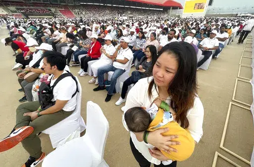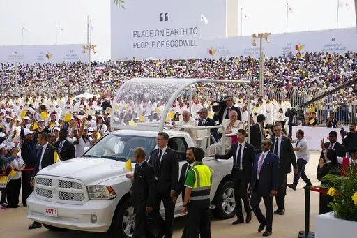 An estimated 30,000 people, some traveling from Saudi Arabia, Kuwait and other Gulf countries, packed the Bahrain national stadium for Francis’ big Mass. The English-language liturgy was clearly geared toward the foreign workers, with popular English hymns and prayers in Malay, Tagalog and Tamil and a priest offering English translations of the pope’s native Spanish homily.
