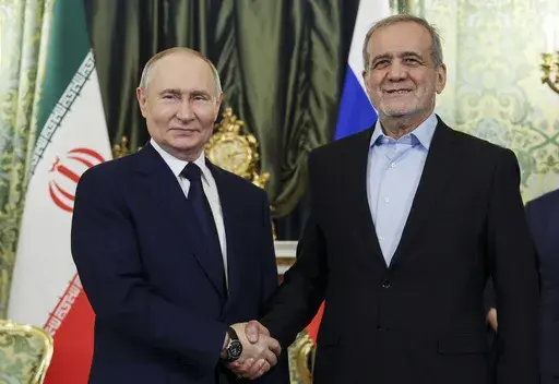 MOSCOW (AP) — Russian President Vladimir Putin and his Iranian counterpart, Masoud Pezeshkian, signed a broad cooperation pact Friday as their countries deepened their partnership in the face of stinging Western sanctions.