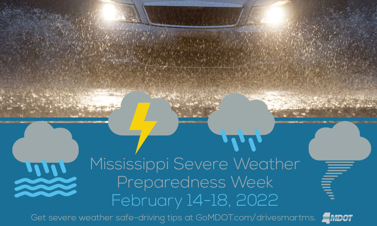 To prepare Mississippians for severe weather season in March, April and May, Gov. Tate Reeves declared February 14-19, 2022, as Mississippi Severe Weather Preparedness Week. The purpose of this week is to spread awareness of the potential for severe weather in Mississippi, as well as provide information on ways that Mississippians can protect themselves in the event of severe weather.