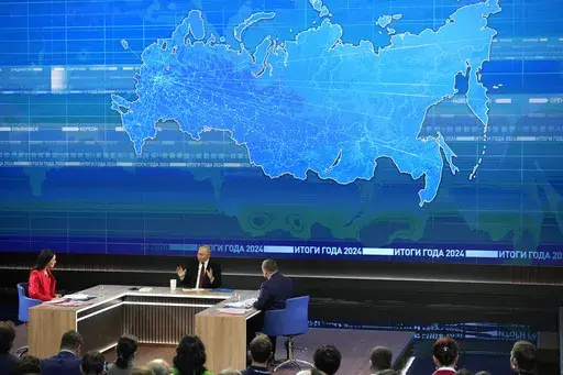 MOSCOW (AP) — President Vladimir Putin boasted that his military operation in Ukraine has strengthened Russia and denied that the ouster of key ally Bashar Assad in Syria had hurt Moscow’s prestige, as he took questions at his annual news conference and call-in show Thursday.