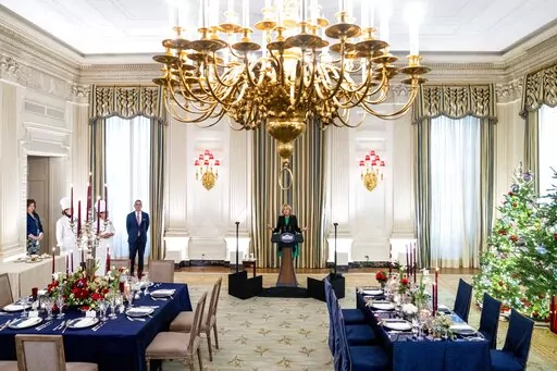 Biden said the first White House state dinner since 2019 will be "an expression of welcome and friendship, a way to connect through a language that transcends words.” She did not take questions from reporters and left the preview room after her brief remarks.
