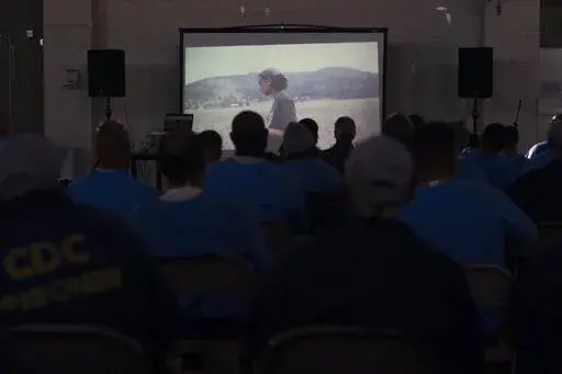 The screening at Valley State Prison was held in the prison’s gymnasium which, until that day, had been closed for recreational activities like basketball as part of ongoing COVID restrictions. About 150 prisoners were allowed in for the film — individual paper bags of buttered popcorn and cold sodas included with admission — their excitement palpable after months of isolation.