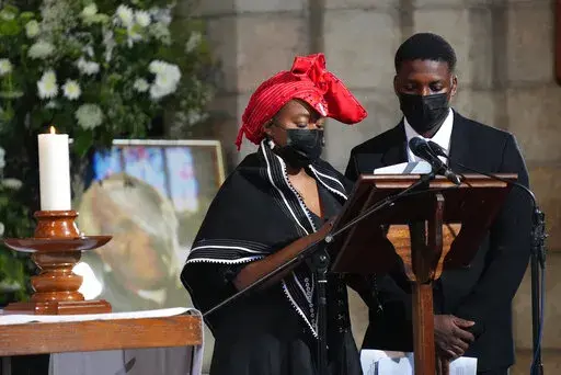 CAPE TOWN, South Africa (AP) — Anglican Archbishop Emeritus Desmond Tutu has been remembered at a state funeral Saturday for his Nobel Peace Prize-earning role in ending South Africa's apartheid regime of racial oppression and for championing the rights of LGBTQ people.