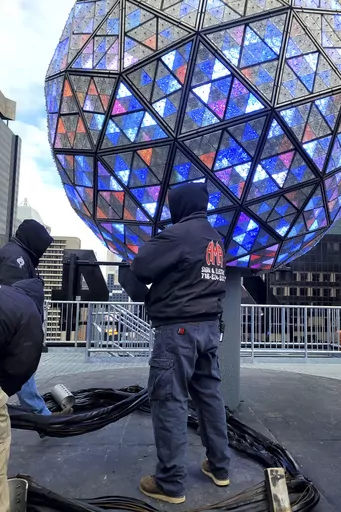 NEW YORK (AP) — The confetti has been tested for airiness. The giant numerals – 2 0 2 4 – are in place. And the luminous ball, bedazzled with 2,688 crystal triangles, is fixed to the pole from which it makes its 60-second descent at 11:59 p.m.