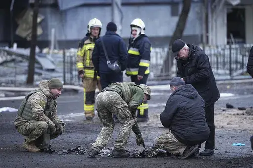 The Kyiv City Military Administration said three people were killed and three more injured in the attack. A fourth victim had been assumed dead but the administration said later the case has yet to be confirmed. The known victims are two men aged 43 and 25, and a 41-year-old woman, officials said.