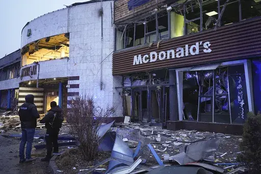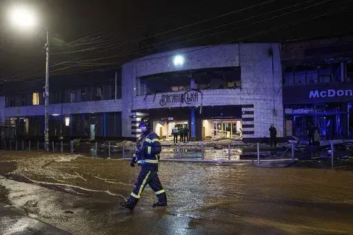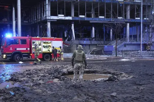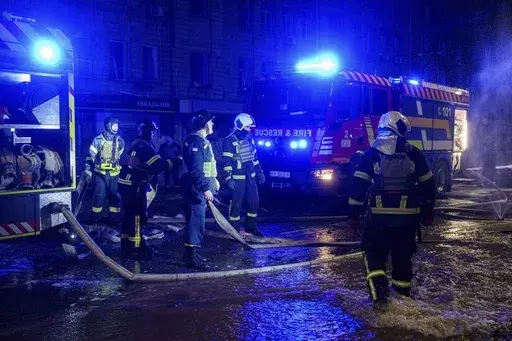KYIV, Ukraine (AP) — Russia attacked Ukraine's capital with a barrage of drones and missiles Saturday, leaving at least three people dead, while industrial sites in Russia were set ablaze by Ukrainian strikes.