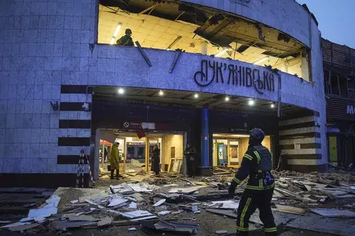 Kyiv’s mayor, Vitali Klitschko, said windows were broken in the city's Shevchenkivskyi district, and there was smoke at the entrance of a residential building. A water supply pipeline was also damaged, he added. The Lukyanivska metro station was closed after the attacks damaged its glass entrance, but was later reopened.