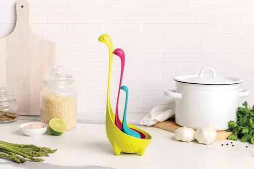 SOME KITCHEN WHIMSY: The Loch Ness Monster is legendary. A company called Ototo has turned Nessie into a soup ladle in green, turquoise or purple. And it stands up by itself. The company sells lots of other colorful, fun kitchen gadgets, including a baby Nessie tea infuser and colander spoon. $17 for soup and $16.95 for tea.