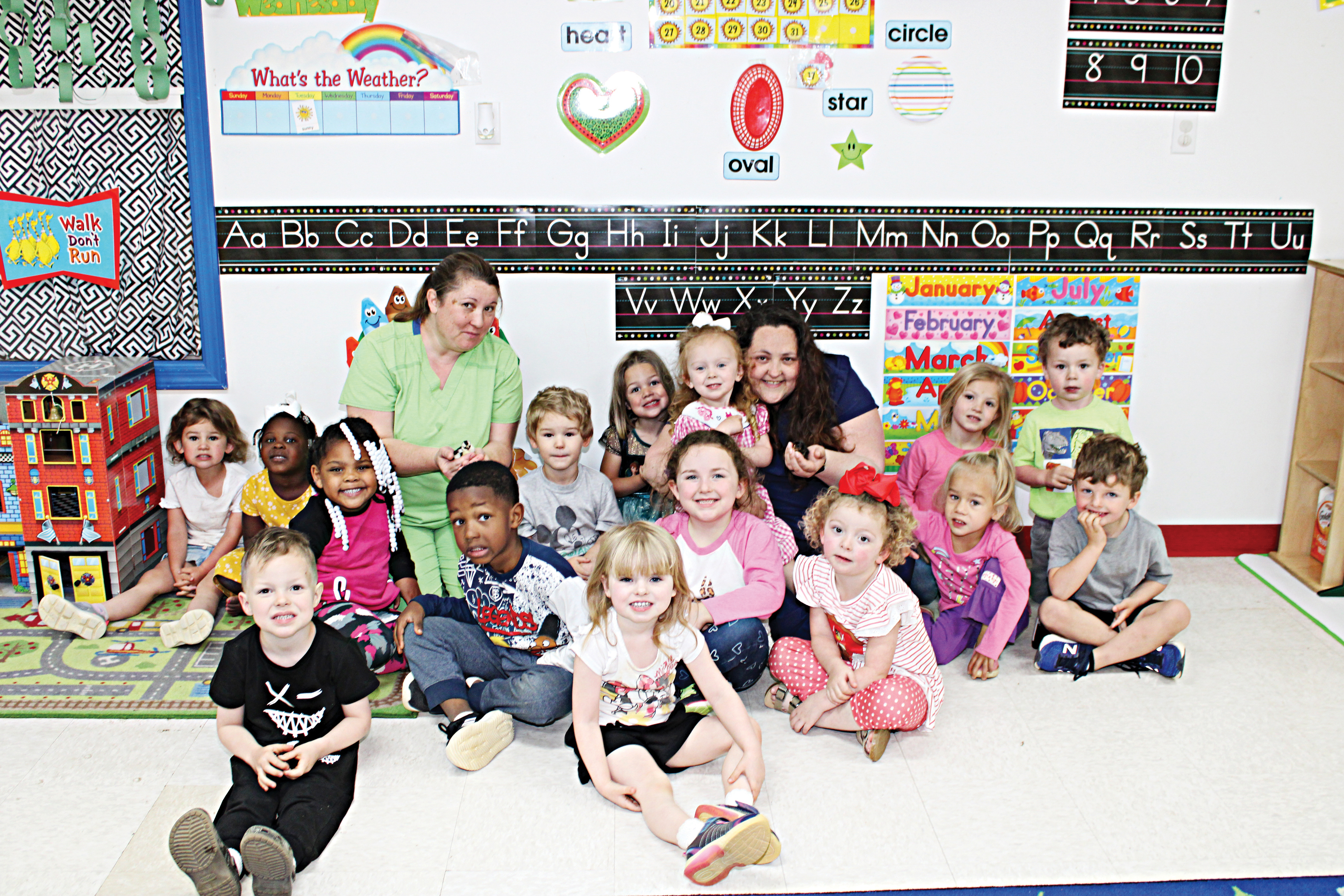 Ms. Delia Arbuckle and Ms. Trinity Moorhead’s class at Ms. Mary’s Little Learners pose with two of their newborn chicks that hatched Tuesday, March 29. Class members include, front, from left, Clayton Hill, Freyja Spitler; second row, Lena Chandler, Jacob Pickens, Ada Brown, Journee Pena, Aria Bell and Rhett Wilson; back row, Jane Conrad, Lucy Gilliland, Delia Arbuckle, Rowan Golding…