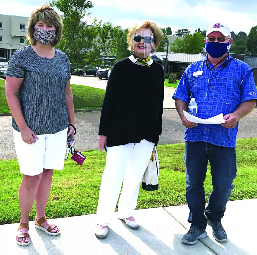 Grenada Garden Club Trails Committee members are pictured, from left, Gwen Graham, Margaret Davis, Chairman; and Trent Little, Director of Facilities Operations, Holmes Community College Goodman Campus, as they mark the location for the new wildflower bed at Holmes Community College in Grenada. | Submitted Photo