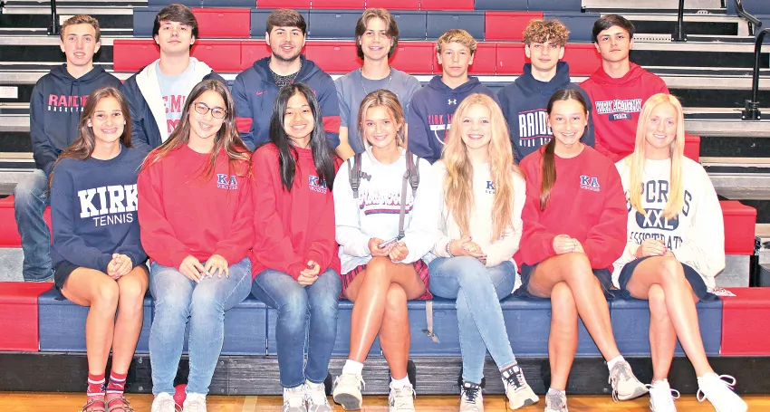 The Kirk Academy tennis team recently competed in the MAIS District Tennis Tournament in Clarksdale. Kirk boys won first place. Kirk girls came in second only losing by a half point. Eleven players took part in the North State Tournament. A total of six players are schedule to take part in the State AAA Tournament this week in Ridgeland. Team members include, front row, from left, Molly Lane, Taylor Kate Hall, Meg Daves, Lily Gober, Kaycie Clements, Emily Lane and Abby Redwine. Back row, Taylor Leverette, Kyle LaBarreare, Woods Nerren, Carson Stanford, Linton Carson, Chandler Beissel and Cole Bailey. | Submitted Photo