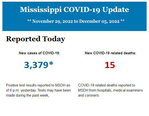 Listed below is the recent COVID-19 update for the state of Mississippi.