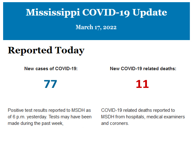 Listed below is the daily COVID-19 update for the state of Mississippi.