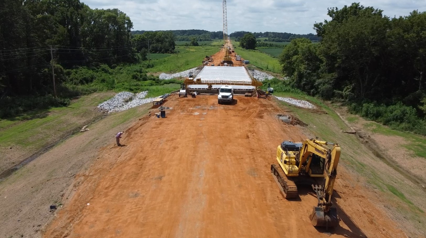 Progress continues on new construction of a four-lane highway designated as State Route 76 connecting State Route 25 to State Route 23. This is the last section of the highway project known as “Corridor V” in Itawamba County. Grading, drainage and bridges are complete. The first lift of asphalt has been placed on almost all of the project, and work to place the second lift has begun. The tie-in at SR 25 on the west end of the project is complete and existing sections of S.R. 25 will be removed for the new alignment. The $81 million project was awarded to Eutaw Construction Company Inc. of Aberdeen. Work is expected to be completed summer of 2023.