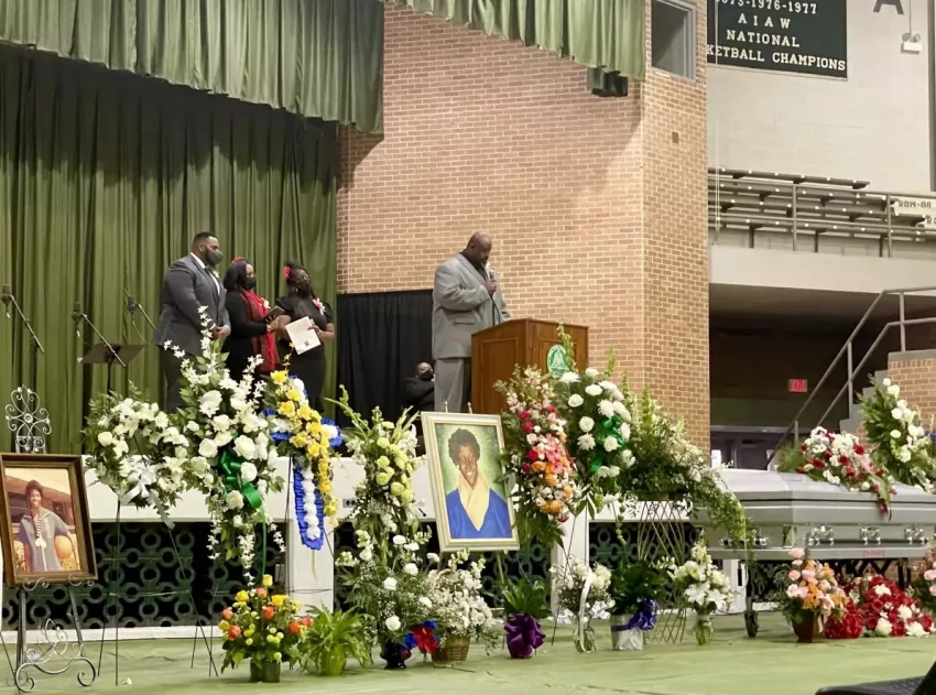 The two-hour ceremony underscored the impact that Harris, the powerful 6’3 center, had on every community she was a part of: Minter City, her hometown; Delta State University; the Mississippi Delta region; and her four children and their ten grandchildren.