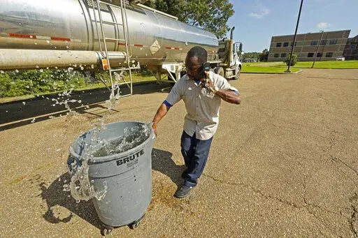 Soon after water stopped flowing through the pipes of many households throughout Jackson, officials rolled a tanker into Forest Hill's parking lot for water distribution. Santiago Matthews, a maintenance worker for the high school, had a garbage container filled to the brim with water last week to fill toilets for the staff working inside. He hauled the garbage container up a short incline back to the high school with water sloshing over the sides.