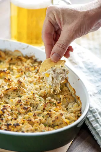 This dip combines sweet, luxurious crabmeat with corn. I first made this at the end of a summer, with fresh corn, but frozen or canned and drained corn works just fine.