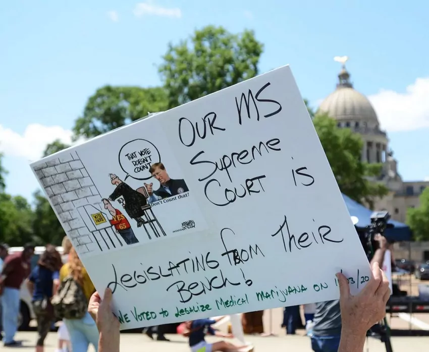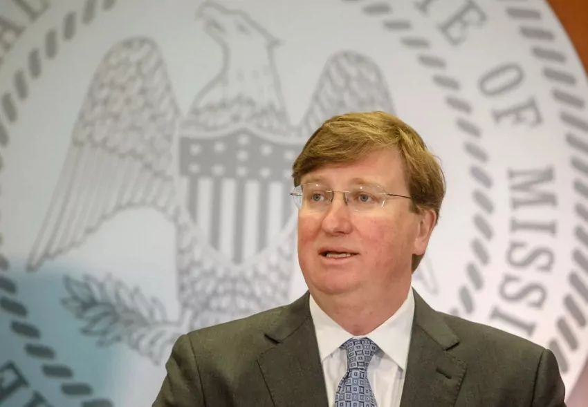 House speaker Philip Gunn, from left, and Gov. Tate Reeves listen as Lt. Gov. Delbert Hosemann speaks at the start of Gov. Tate Reeves' COVID-19 press conference at the State of Mississippi Woolfolk Building in Jackson, Miss., Thursday, May 7, 2020. Credit: Eric J. Shelton/Mississippi Today