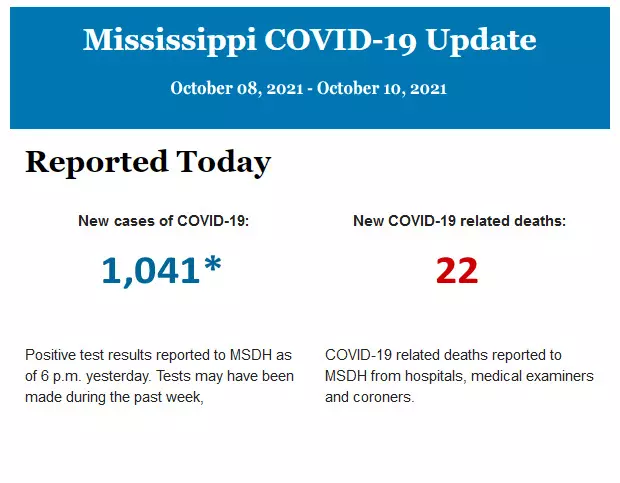 Listed below is the daily COVID-19 update for the state of Mississippi.