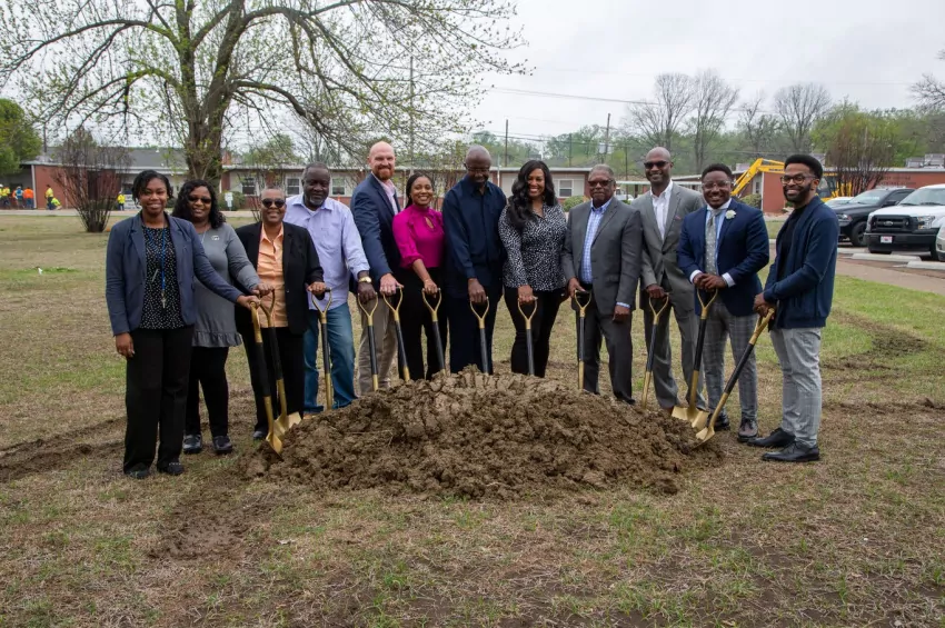 L to R: Latasha Turner, Asst. Superintendent; Councilwoman Rochelle Armstrong; Former Rosedale Mayor Aelicia Thomas; Councilman Charles Turner; State Local Public Agency (LPA) Engineer Lee Frederick; Laquisha Williams, Asst. to Commissioner Willie Simmons; Rosedale Mayor Tracy Robinson; Councilwoman Tracy Tucker; Commissioner Willie Simmons, Central Transportation District; Dr. Abe Hudson, Program Officer, Walton Family Foundation; District 1 Bolivar County Supervisor Jacorius Liner; Dr. Will Smith, Superintendent, West Bolivar Consolidated School District.