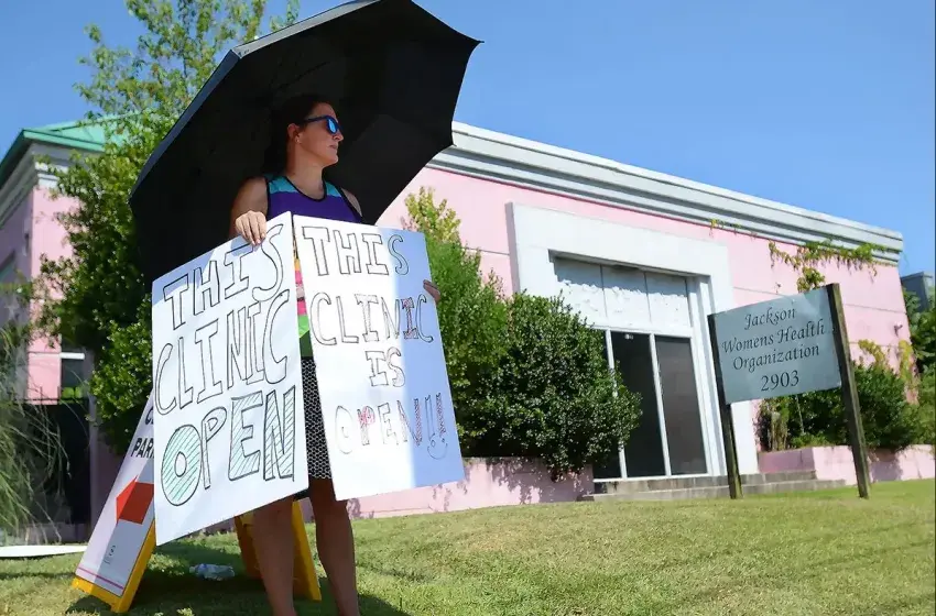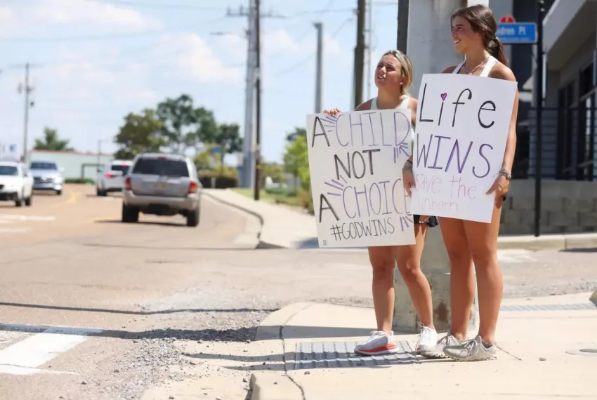 Anti-abortion protestors stand outside of the Jackson Women's Health Organization in Jackson, Miss., Friday, June 24, 2022. The Supreme Court overturned Roe vs. Wade, the 1973 case that established a person’s right to an abortion. Credit: Eric Shelton/Mississippi Today