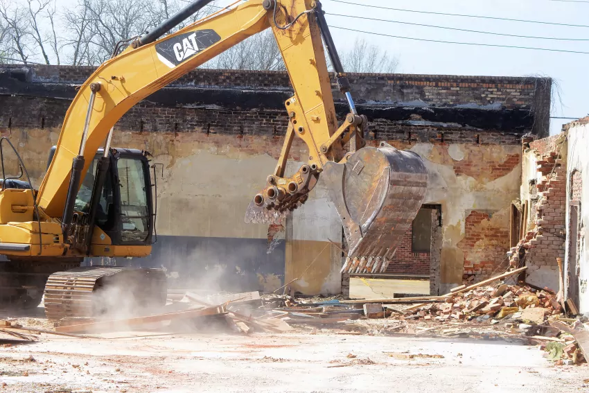 Grenada County work crews began demolition of a building on First Street adjacent to the Justice Court building and the Courthouse in Downtown Grenada Monday. According to Grenada County Board of Supervisors President Michael Lott (District 1), the building once housed a shoe shop, a bail bondsman’s office and an attorney’s office.