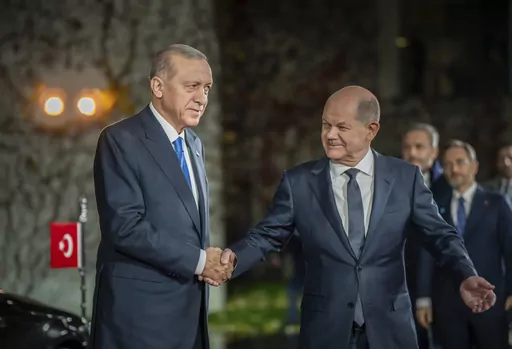 BERLIN (AP) — Turkish President Recep Tayyip Erdogan and German Chancellor Olaf Scholz on Friday aired deep differences over the war between Israel and Hamas as the Turkish leader made a brief and tensely anticipated visit to Berlin.