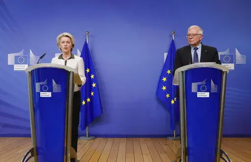 EU foreign policy chief Josep Borrell said the bloc’s 27 foreign ministers had greenlighted the unprecedented support for Ukraine and that those actions would take effect within hours.