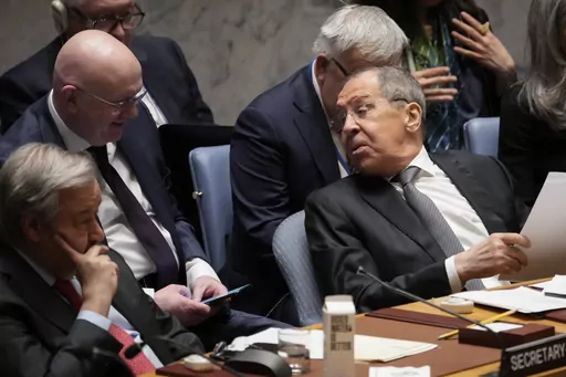 UNITED NATIONS (AP) — The United Nations chief and representatives from Western nations berated Russia’s top diplomat as he chaired a U.N. meeting Monday, accusing Moscow of violating the U.N. Charter by attacking Ukraine and occupying part of its territory.