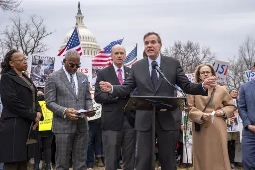 “We are witnessing in real time the most corrupt bargain in American history,” Maryland Sen. Chris Van Hollen shouted to supporters at the rally, referring to Musk, his support for President Donald Trump and his role in challenging USAID and other targeted agencies.