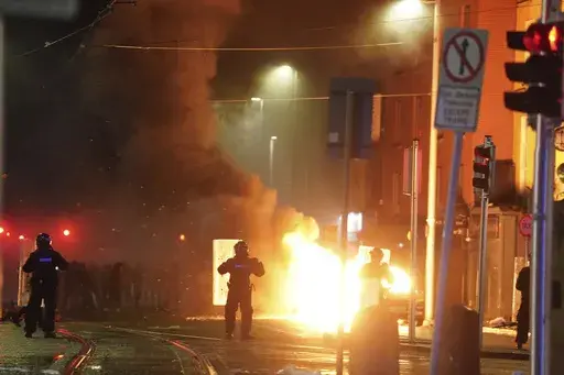 LONDON (AP) — Violent clashes broke out in central Dublin on Thursday evening, with vehicles torched and riot police attacked, after a 5-year-old girl was seriously injured in a knife attack earlier in the day that also saw a woman and two other young children hospitalized.