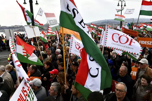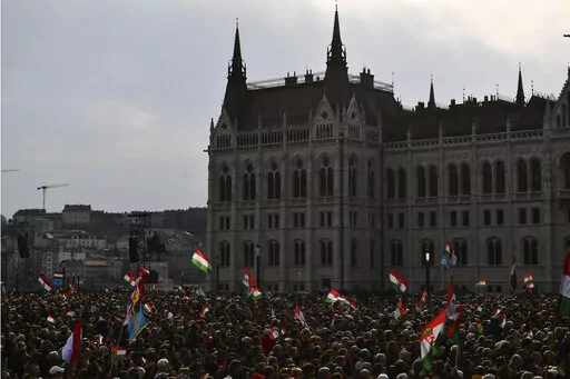 BUDAPEST, Hungary (AP) — Two mass rallies held by opposing political forces filled the streets of Hungary's capital on Tuesday in mutual displays of strength before the country's April 3 election, a contest that will determine whether populist Prime Minister Viktor Orban wins a fourth consecutive term.