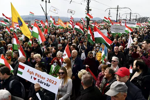 At a separate rally of thousands on the Danube River, the leader of the opposition coalition, independent conservative Peter Marki-Zay, said the election choice for voters this year has “never been so easy... Instead of the East, we choose Europe.”