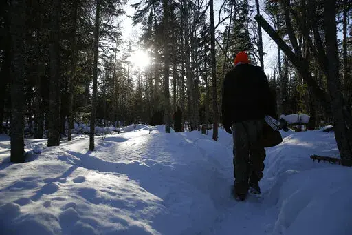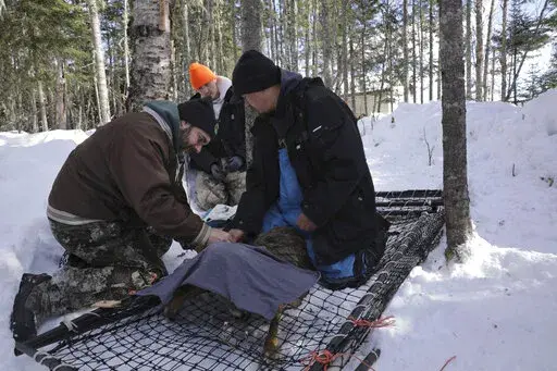GRAND PORTAGE, Minn. (AP) — To administer this COVID test, Todd Kautz had to lie on his belly in the snow and worm his upper body into the narrow den of a hibernating black bear. Training a light on its snout, Kautz carefully slipped a long cotton swab into the bear’s nostrils five times.