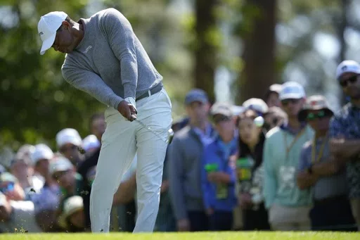 The first good look the public has had of it has been at Augusta National this week. Woods wore a salmon-colored polo for the opening round Thursday that featured the brand's logo, a tiger with 15 stripes in a nod to his 15 major wins. Woods then slipped into a gray-and-white ensemble Friday, when he returned early to finish his first round and then played his second.