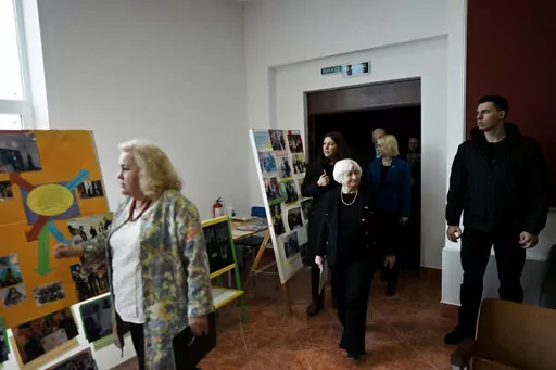 The U.S. official also visited a renovated school that had its windows blown out by the blast wave from a Russian missile that landed nearby in March. She also announced an additional transfer of $1.2 billion, the first tranche of the $10 billion assistance package.